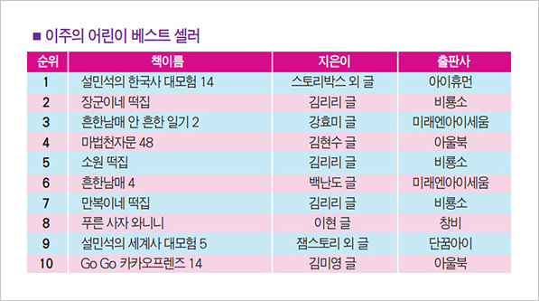 ¼Ò³âÇѱ¹ / 2020' 06. 22 http://kids.hankooki.com/lpage/book/202006/kd20200622060117125590.htm?s_ref=nv [¿¹½º24 ¾î¸°ÀÌ º£½ºÆ®¼¿·¯] 6¿ù ¼Â° ÁÖ ![]() |